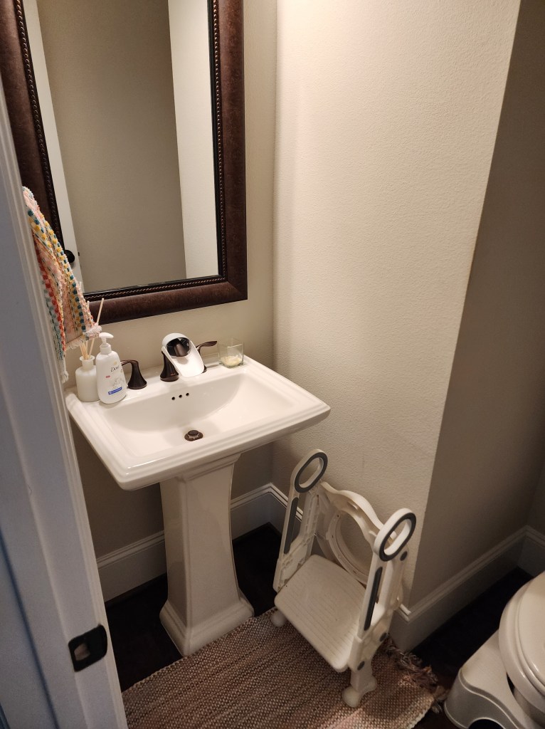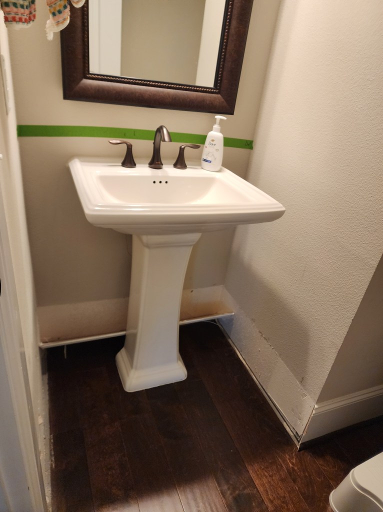 Nesting during pregnancy with my son hit me pretty hard. I found out I was pregnant with him the day after buying $800 worth of lumber to renovate our primary closet. No, I was not nesting that early, but it certainly put a fire under my rear. But, I digress. This post is about our half bath, which I decided was a priority before this baby arrived.