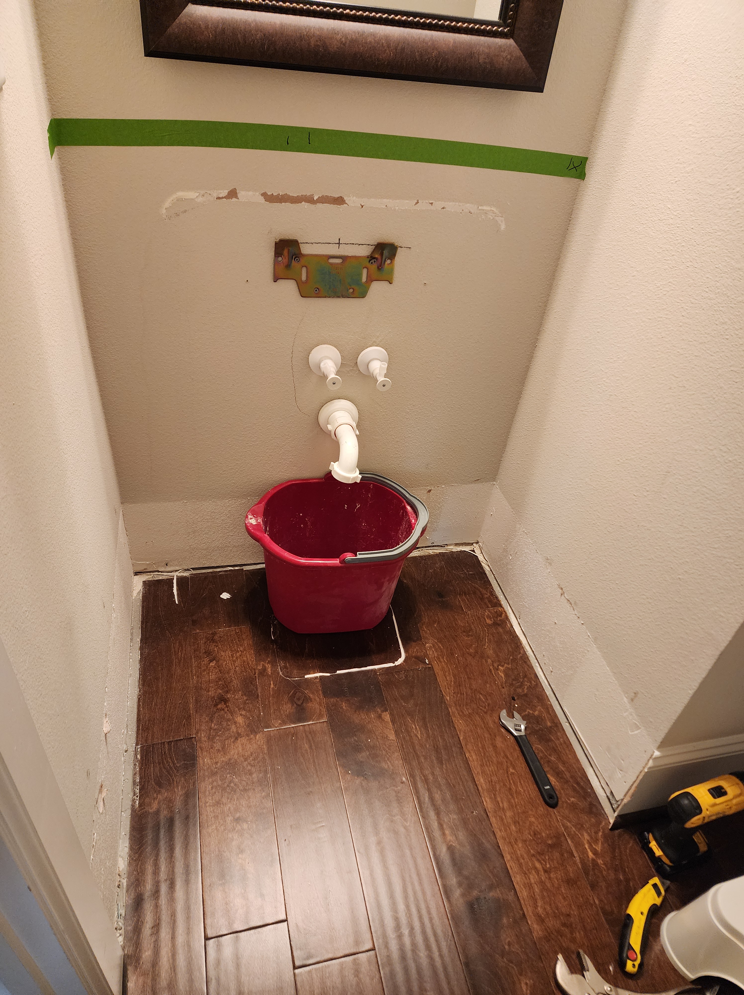 - Touch up the wall paint on the corner where I banged up the sheetrock during installation.