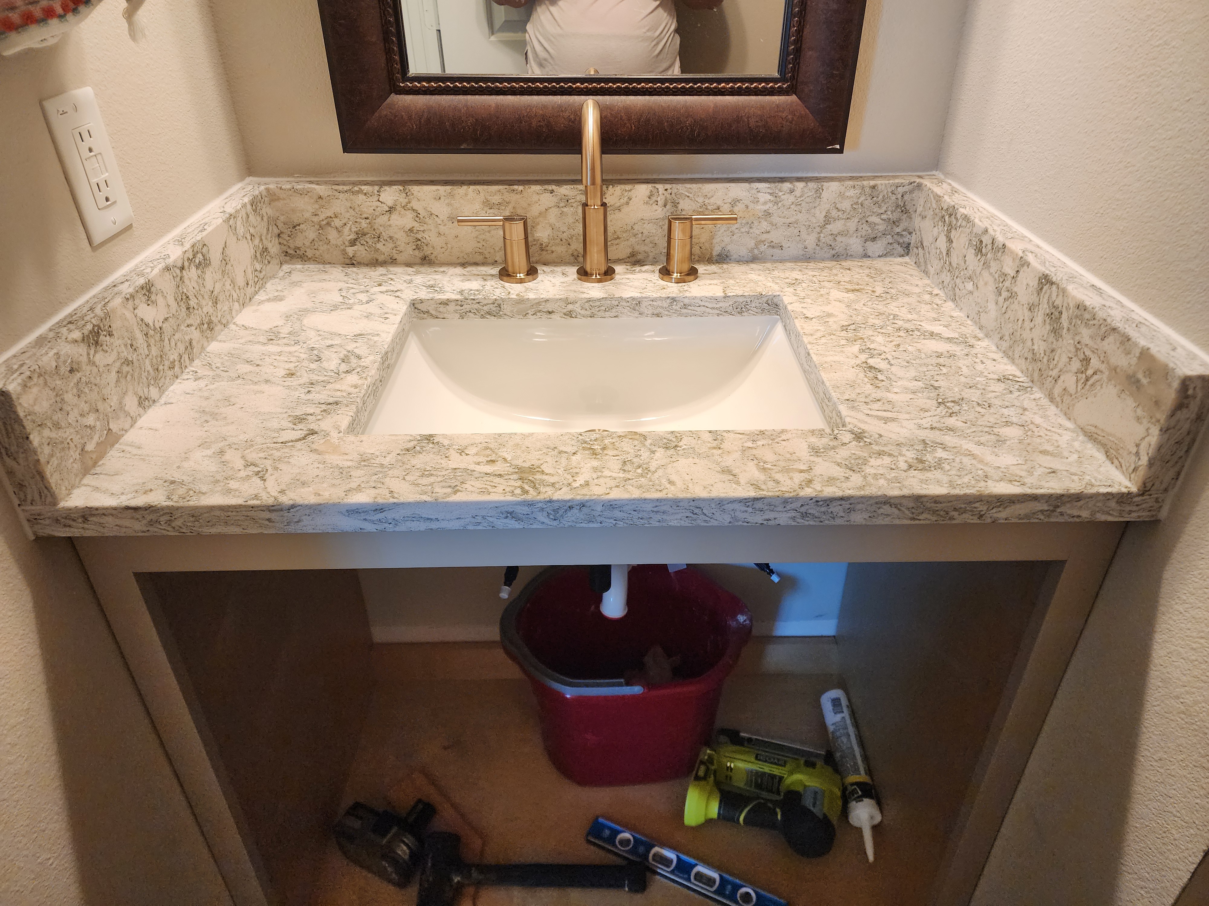 - Caulk where the vanity meets the walls.